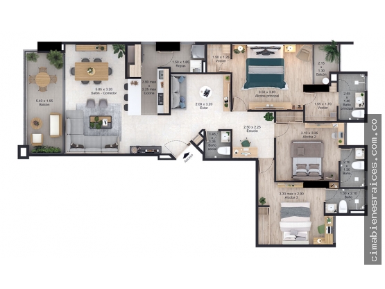 • Alcobas: 3